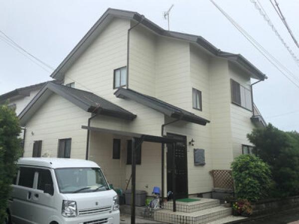 塗料の密着効果を高める目的と、吸い込みムラを無くす為の塗装です。下地の痛み具合や材質、立地条件によって下塗り材の種類を変更しています。強靭な塗膜を作る為には、ここが一番のポイントになるからです。今回は付着力の優れたカチオン系のシーラーを入れて素地の補強を行いました。