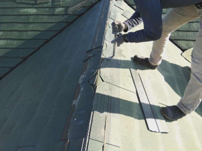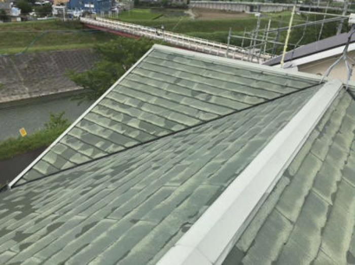 屋根材パミールの劣化により、塗装は不適切。カバー工事も釘が効かない可能性もあり見送り、葺き替え工事をする事になりました。