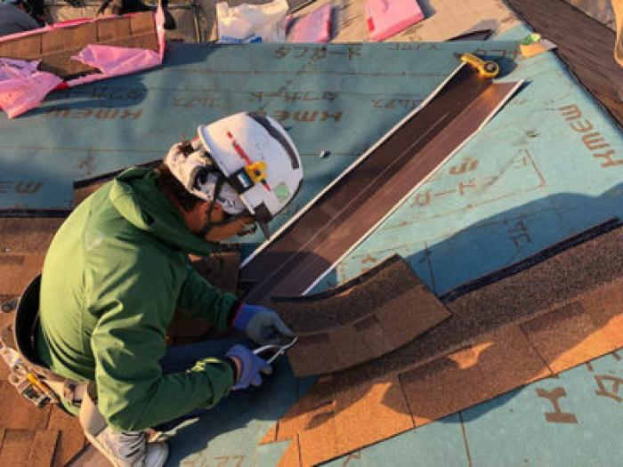 こちらの「オークリッジ」はアスファルト グラスファイバー 天然石で構成されたアスファルトシングル材です。薄くて軽く丈夫な素材で出来ています。施工性・対候性・耐風性・防水性も備えた高性能屋根材。