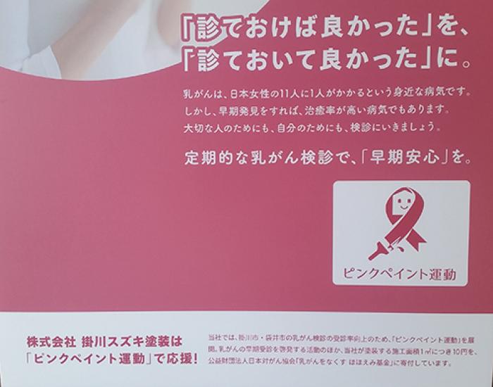 弊社ではピンクペイント運動で、乳がん早期発見の為の受診率向上を応援しています。